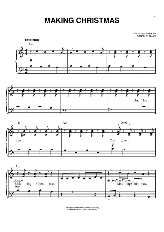 Digital Sheet Music for Making Christmas by Danny Elfman scored for Easy Piano; id:395504