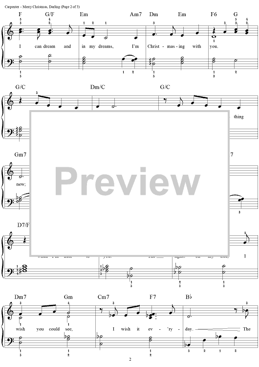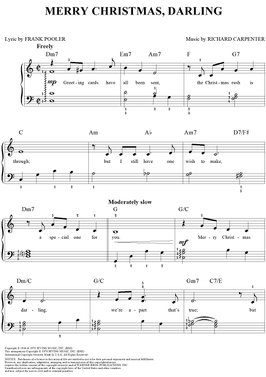 Digital Sheet Music for Merry Christmas, Darling by The Carpenters, Richard Carpenter, Frank Pooler scored for Easy Piano/Vocal; id:273900