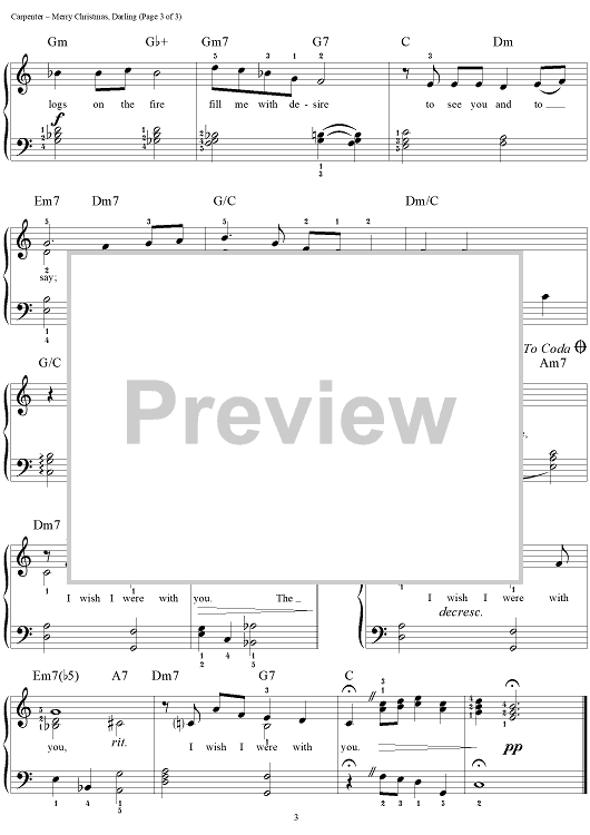 "Merry Christmas, Darling" Sheet Music by The Carpenters