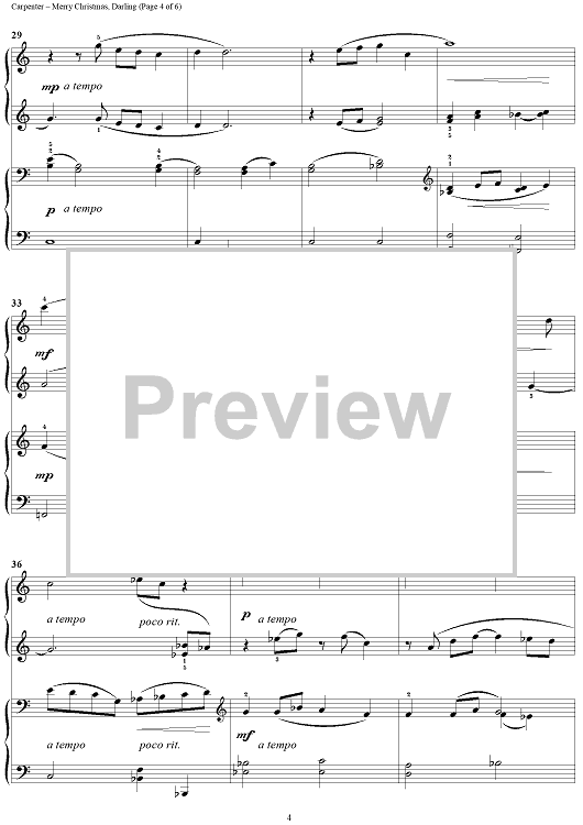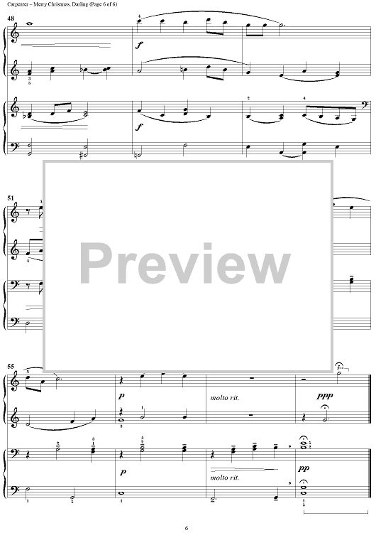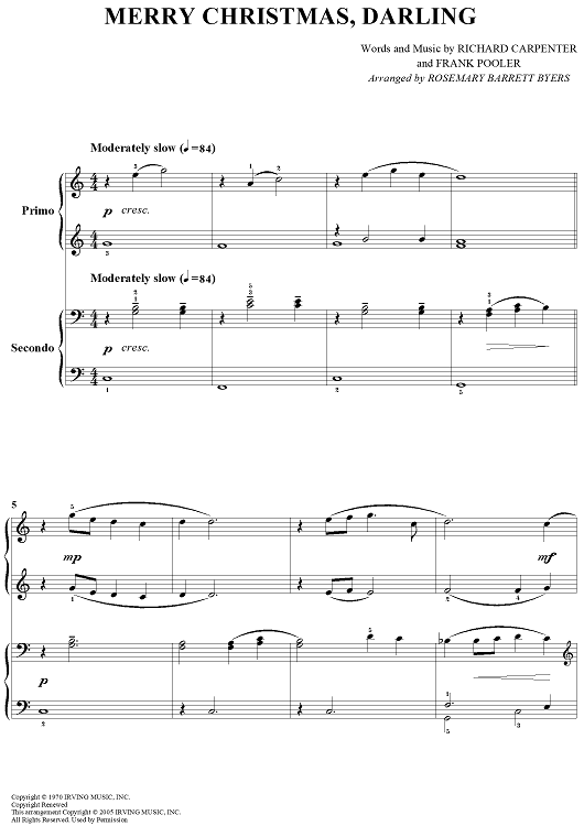 Digital Sheet Music for Merry Christmas, Darling by The Carpenters, Richard Carpenter, Frank Pooler, Rosemary Barrett Byers scored for 1 Piano, 4 Hands; id:386329