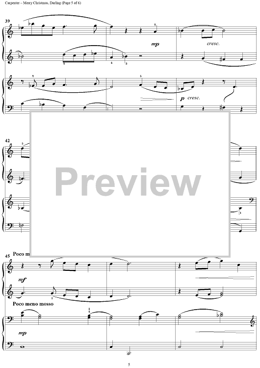 "Merry Christmas, Darling" Sheet Music by The Carpenters