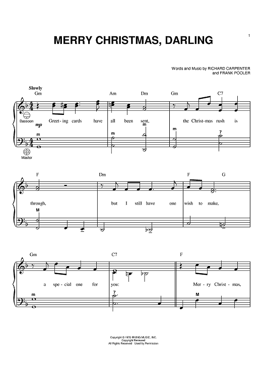 "Merry Christmas, Darling" Sheet Music by The Carpenters