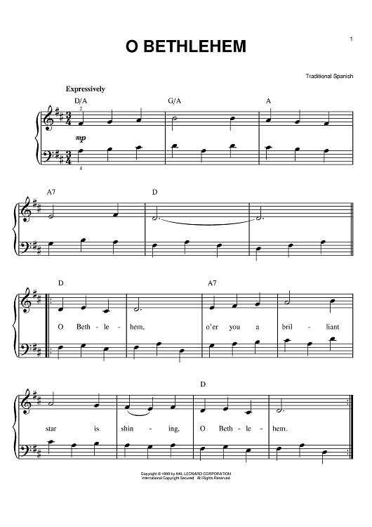 Digital Sheet Music for O Bethlehem by scored for Easy Piano; id:375255