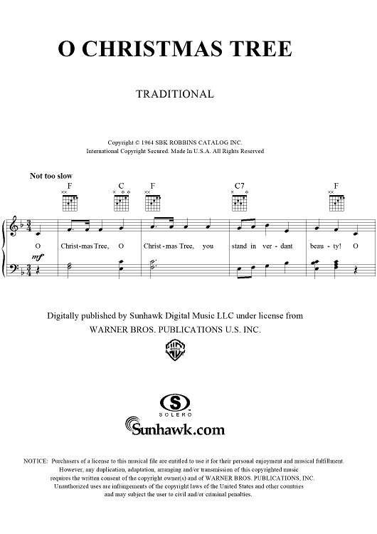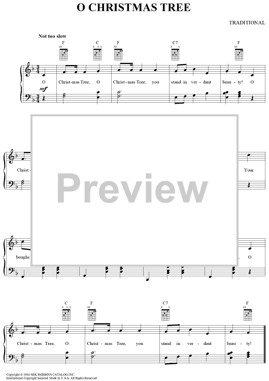 Digital Sheet Music for O Christmas Tree by Traditional scored for Piano/Vocal/Chords; id:261562