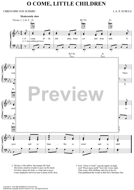 Digital Sheet Music for O Come, Little Children by Christoph von Schmid, Johann Abraham Peter Schulz scored for Piano/Vocal/Chords; id:257341