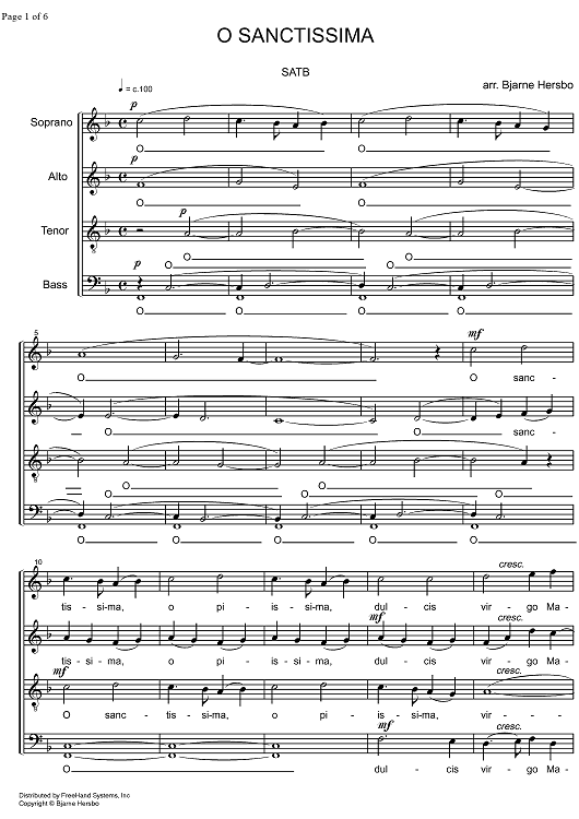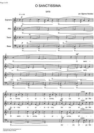 Digital Sheet Music for O Sanctissima, Hymn by , Unknown Writer, Bjarne Hersbo scored for SATB Choir; id:325598