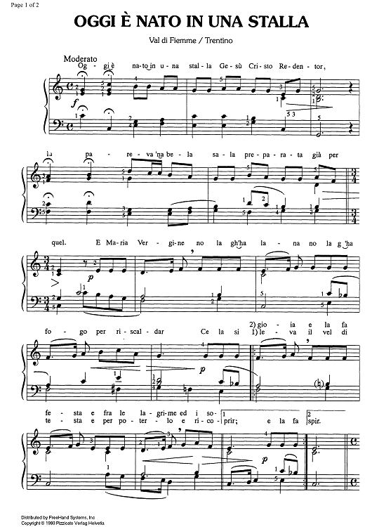 "Oggi è nato in una stalla (Trentino)" Sheet Music by Traditional