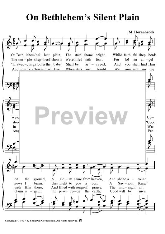 Digital Sheet Music for On Bethlehem's Silent Plain by M. Hornabrook scored for Four-part Mixed Chorus; id:94794