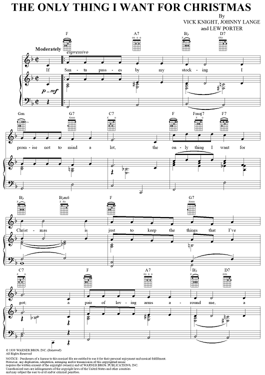 Digital Sheet Music for Only Thing I Want For Christmas, The by Johnny Lange, Lew Porter, Vick Knight scored for Piano/Vocal/Chords; id:250045