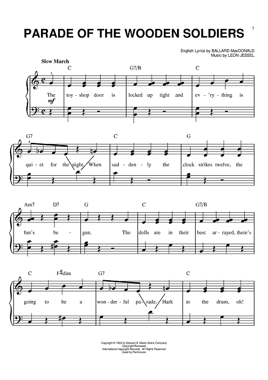 Digital Sheet Music for Parade Of The Wooden Soldiers by Ballard MacDonald, Leon Jessel scored for Easy Piano; id:383602