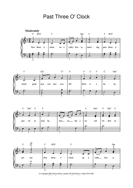 Digital Sheet Music for Past Three O' Clock by scored for Piano; id:375495