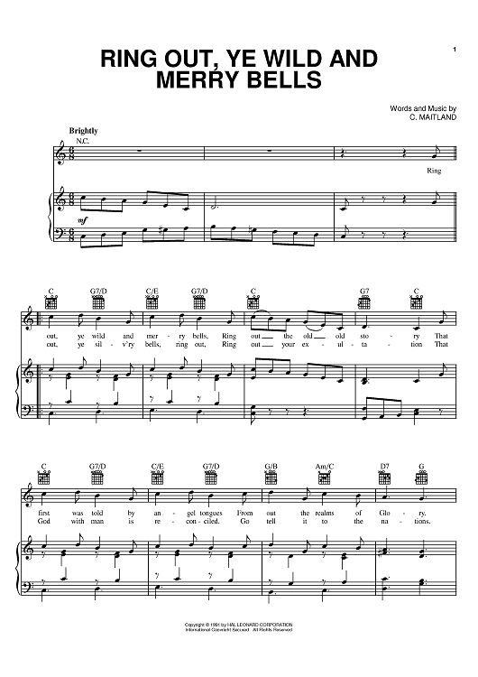 Digital Sheet Music for Ring Out, Ye Wild And Merry Bells by C. Maitland scored for Piano/Vocal/Chords; id:372083