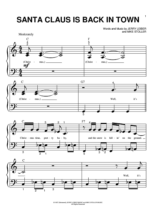 Digital Sheet Music for Santa Claus Is Back In Town by Elvis Presley, Jerry Leiber, Mike Stoller scored for Big Note Piano; id:369596