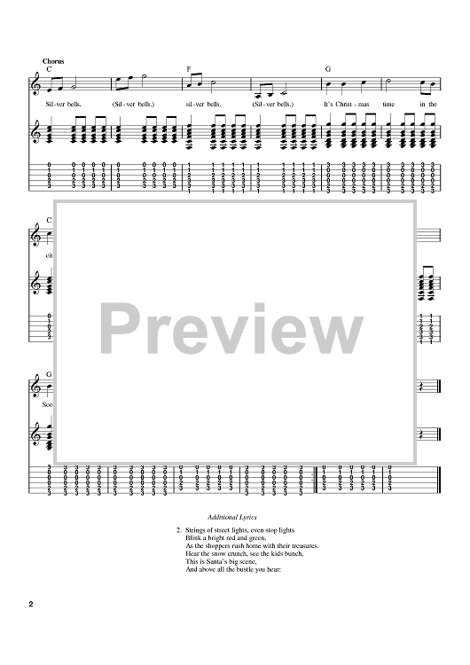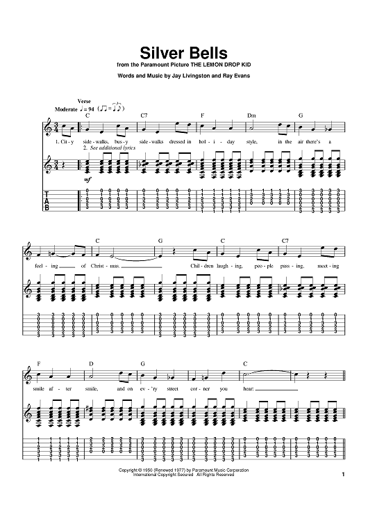Digital Sheet Music for Silver Bells by Jay Livingston, Ray Evans, Kenny Chesney, John Denver scored for Guitar Tab; id:374299