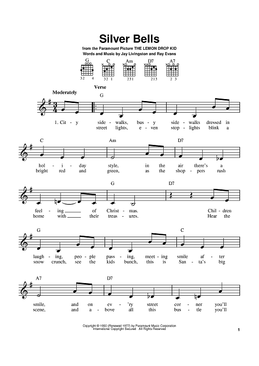 Digital Sheet Music for Silver Bells by Jay Livingston, Ray Evans, Kenny Chesney, John Denver scored for Easy Guitar; id:384684