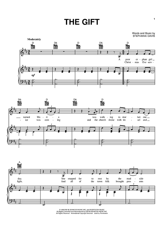Digital Sheet Music for The Gift by Stephanie Davis scored for Piano/Vocal/Chords; id:371939