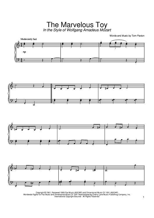 Digital Sheet Music for The Marvelous Toy by Tom Paxton, David Pearl scored for Piano; id:391455