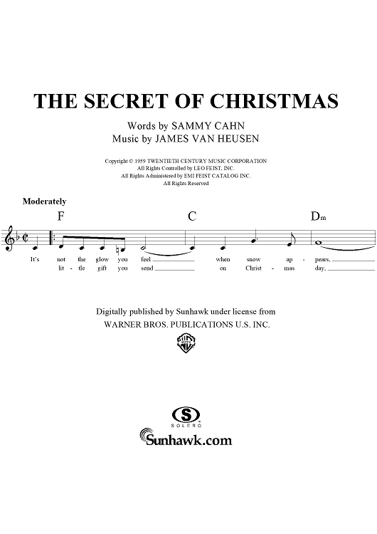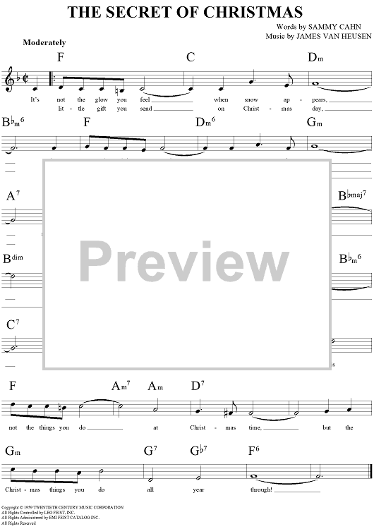 Digital Sheet Music for The Secret of Christmas by Sammy Cahn, Jimmy Van Heusen scored for Lead Sheet; id:265274