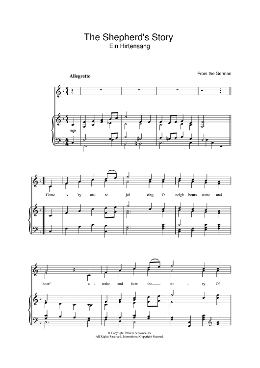 Digital Sheet Music for The Shepherd's Story by scored for Piano/Vocal/Chords; id:394718
