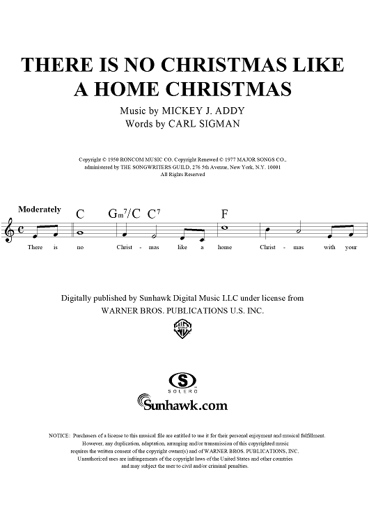 Digital Sheet Music for There Is No Christmas Like a Home Christmas by , Carl Sigman, Mickey J. Addy scored for Lead Sheet; id:277656