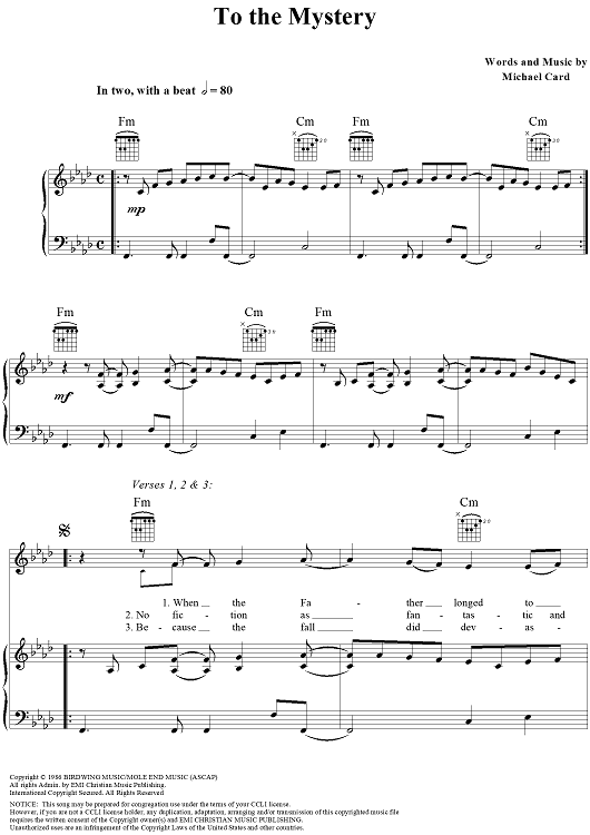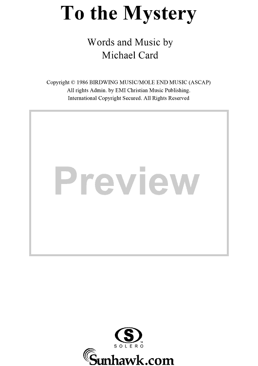 Digital Sheet Music for To The Mystery by Michael Card scored for Piano/Vocal/Chords; id:204424