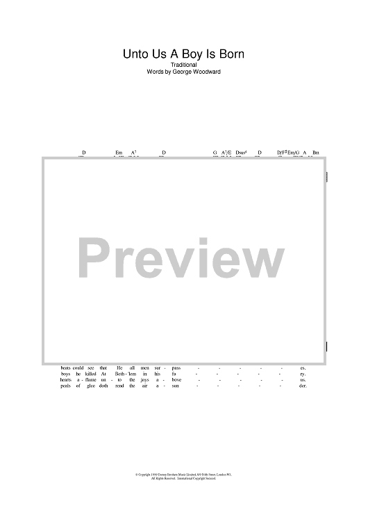 Digital Sheet Music for Unto Us A Boy Is Born by George R. Woodward scored for Lead Sheet; id:385447