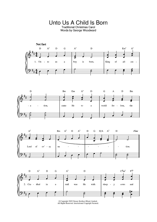 Digital Sheet Music for Unto Us A Boy Is Born by George R. Woodward scored for Piano/Vocal/Chords; id:386110