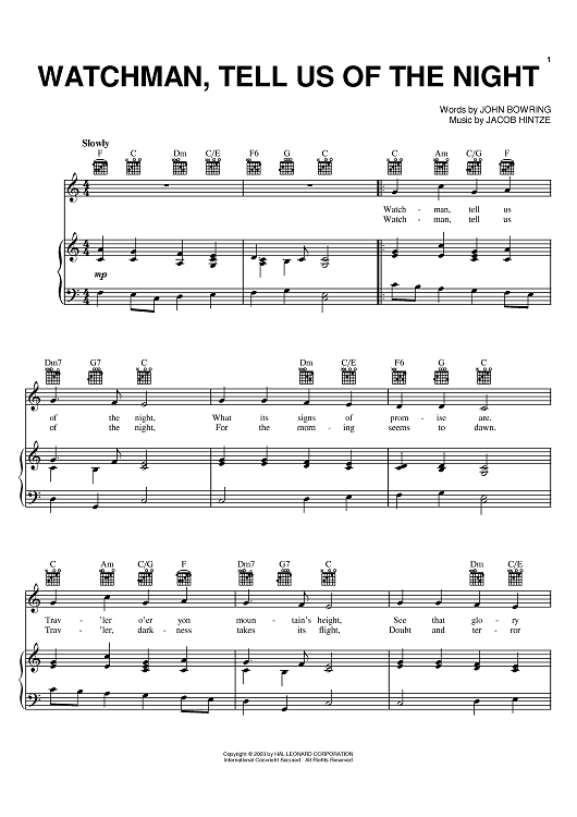 "Watchman, Tell Us Of The Night" Sheet Music by