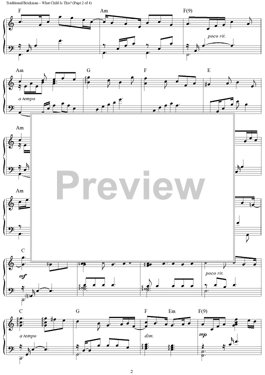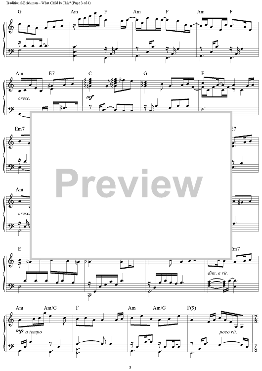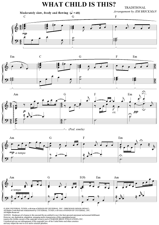 Digital Sheet Music for What Child Is This? by Jim Brickman, Traditional scored for Piano Solo; id:359336