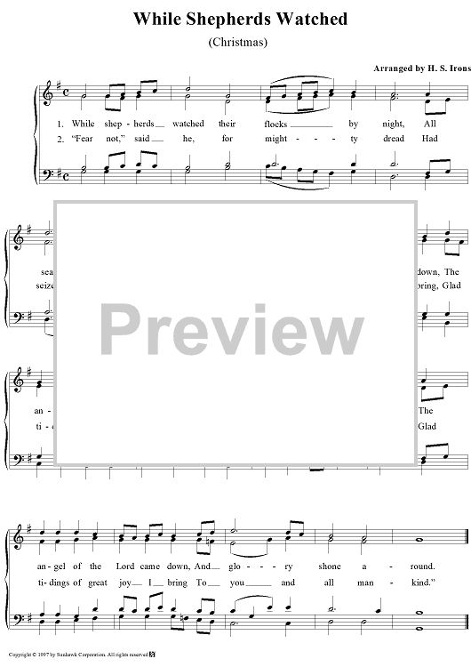 Digital Sheet Music for While Shepherds Watched by Nahum Tate, H. S. Irons scored for Four-part Mixed Chorus; id:94973