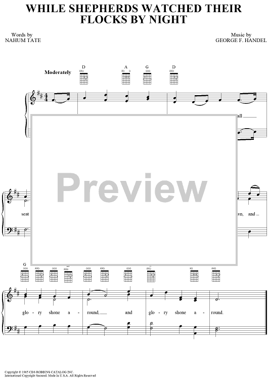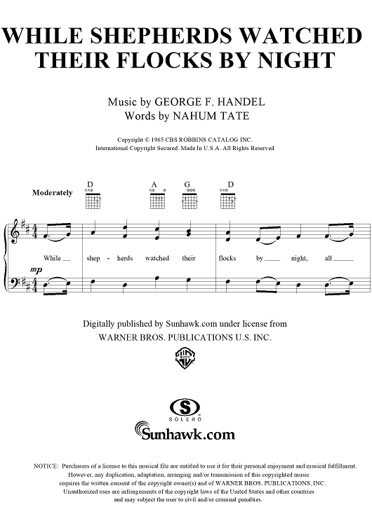 Digital Sheet Music for While Shepherds Watched Their Flocks By Night by George Frideric Handel, Nahum Tate scored for Piano/Vocal/Chords; id:220415
