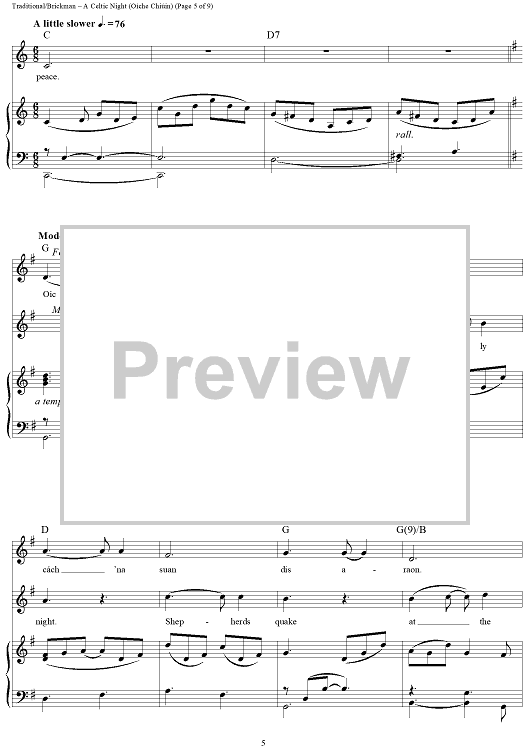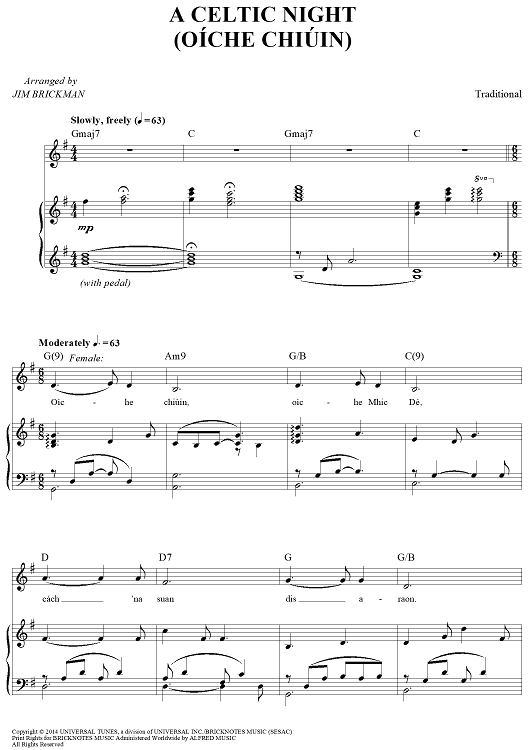 Digital Sheet Music for A Celtic Night (Oíche Chiún) by Jim Brickman, Traditional scored for Piano/Vocal/Chords; id:450047