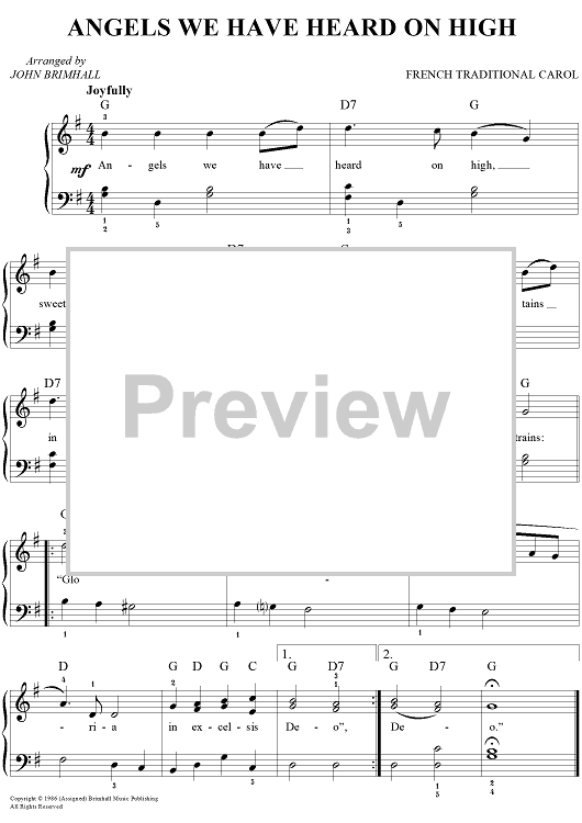 Digital Sheet Music for Angels We Have Heard on High by John Brimhall, Traditional French Carol scored for Easy Piano/Vocal/Chords; id:450525
