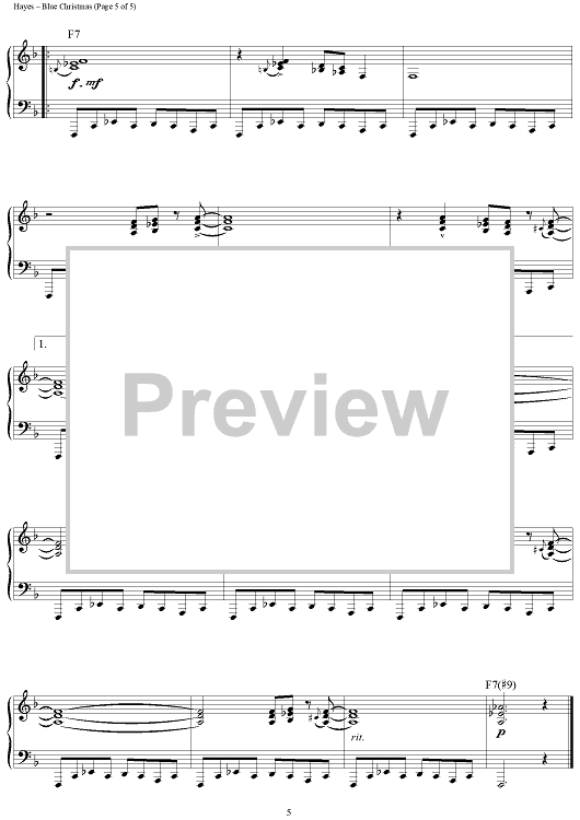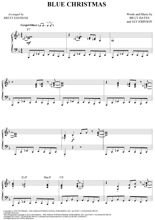 Digital Sheet Music for Blue Christmas by Billy Hayes, Jay Johnson, Brent Edstrom scored for Piano Solo; id:461934