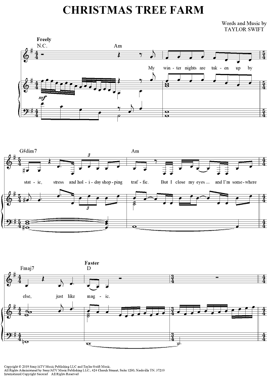 Digital Sheet Music for Christmas Tree Farm by Taylor Swift scored for Piano/Vocal/Chords; id:467933