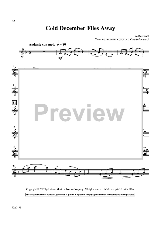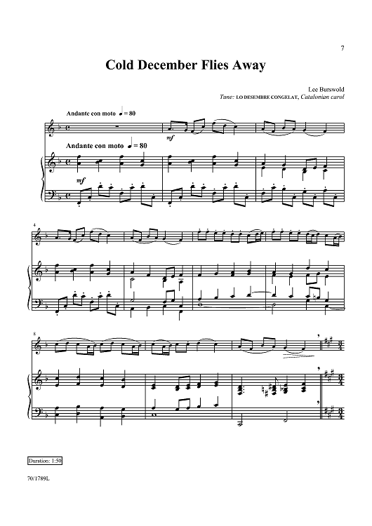 Digital Sheet Music for Cold December Flies Away by Lee Burswold, Catalonian carol scored for Violin/Piano; id:437721