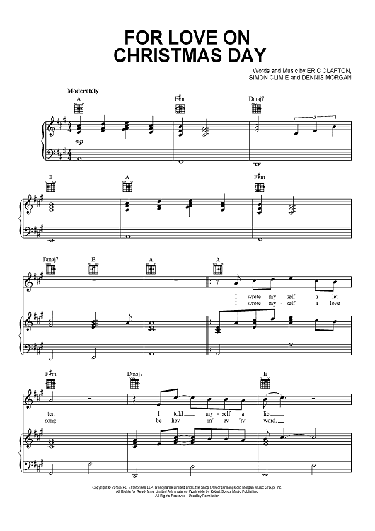 Digital Sheet Music for For Love On Christmas Day by Eric Clapton, Simon Climie, Dennis Morgan scored for Piano/Vocal/Chords; id:466833