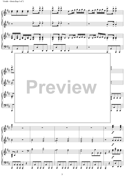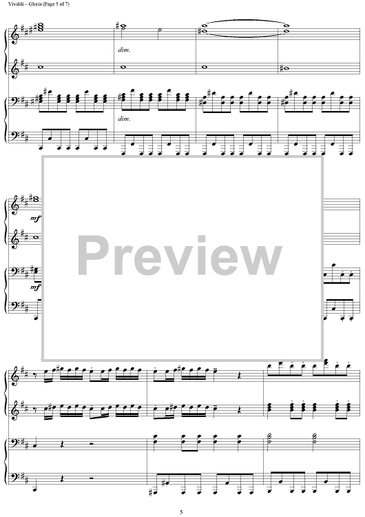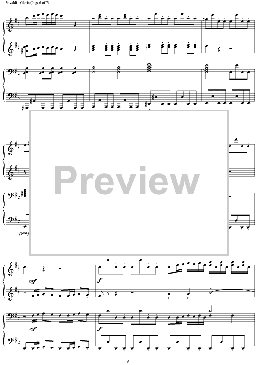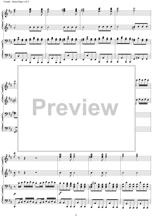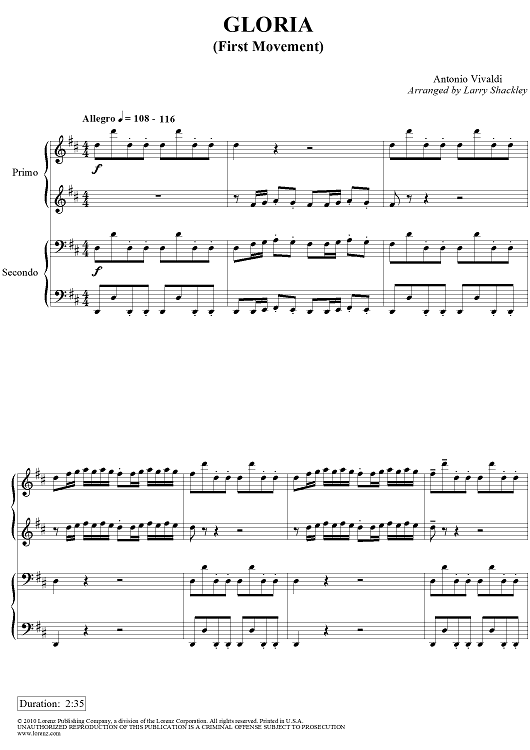 Digital Sheet Music for Gloria (First Movement) by Antonio Vivaldi, Larry Shackley scored for 1 Piano, 4 Hands; id:434815