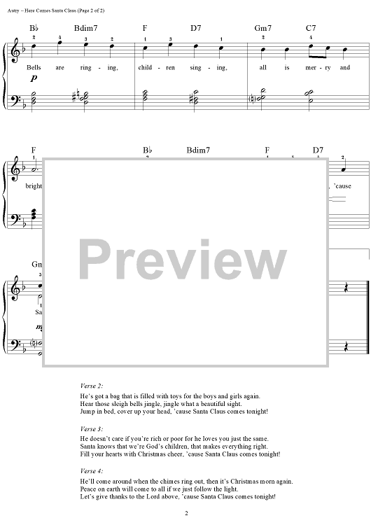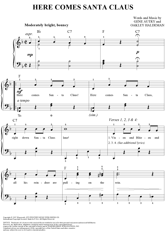 Digital Sheet Music for Here Comes Santa Claus by Gene Autry, Oakley Haldeman scored for Easy Piano/Vocal; id:277170