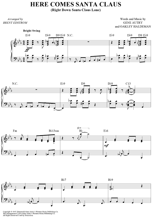 Digital Sheet Music for Here Comes Santa Claus (Right Down Santa Claus Lane) by Gene Autry, Oakley Haldeman, Brent Edstrom scored for Piano Solo; id:461923