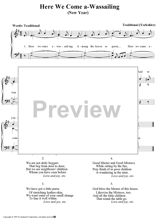 Digital Sheet Music for Here We Come a-Wassailing by Traditional scored for Piano/Vocal; id:94872