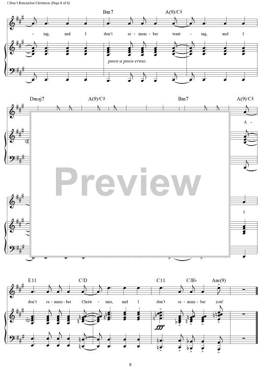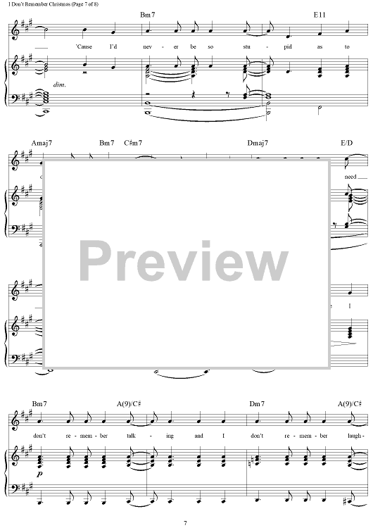 Digital Sheet Music for I Don't Remember Christmas by David Shire, Richard Maltby Jr. scored for Piano/Vocal; id:234744
