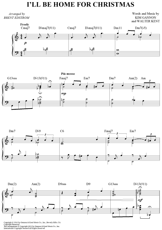 Digital Sheet Music for I'll Be Home For Christmas by Walter Kent, Kim Gannon, Brent Edstrom scored for Piano Solo; id:461920