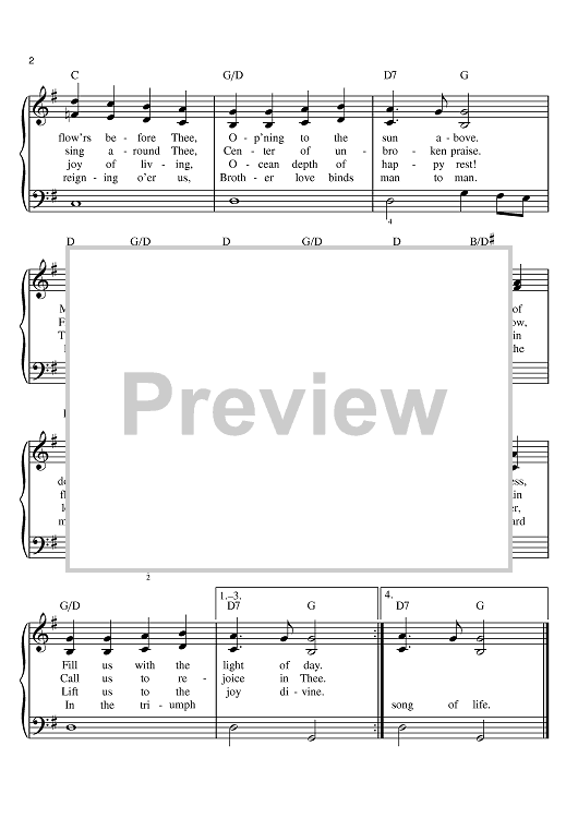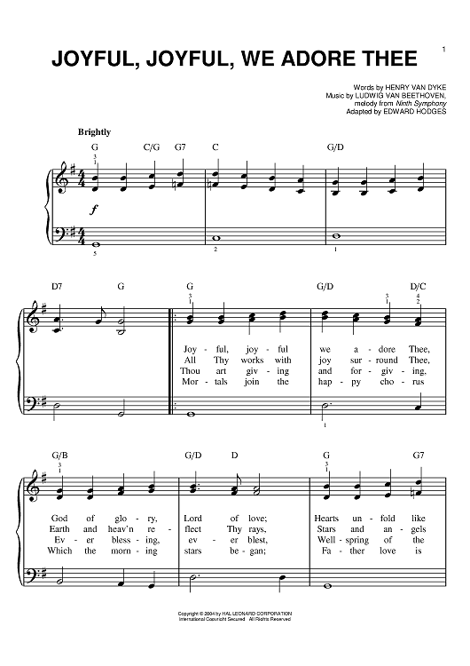 Digital Sheet Music for Joyful, Joyful, We Adore Thee by Ludwig van Beethoven, Edward Hodges, Henry van Dyke scored for Easy Piano; id:381117