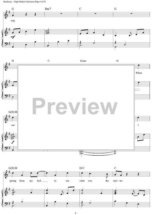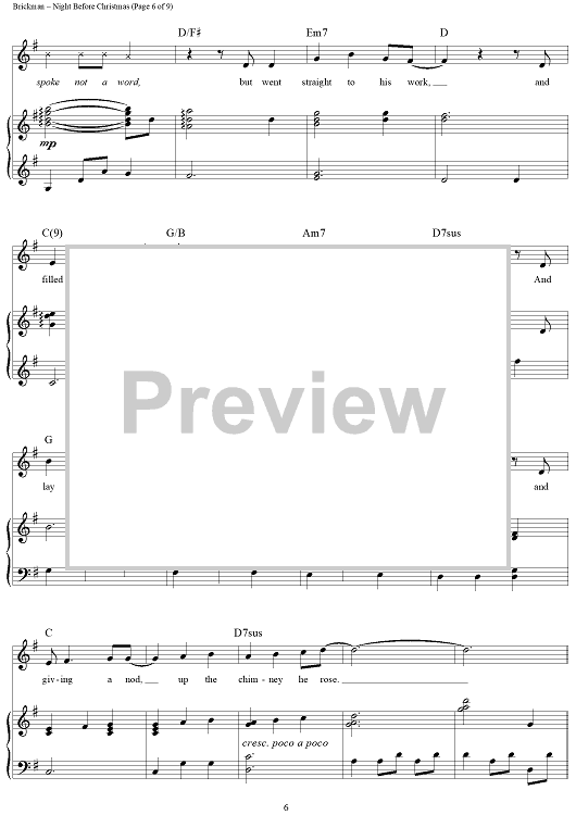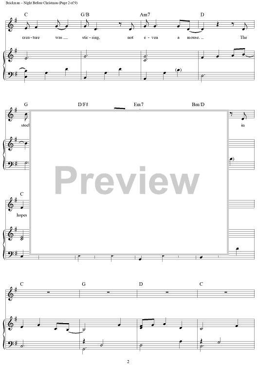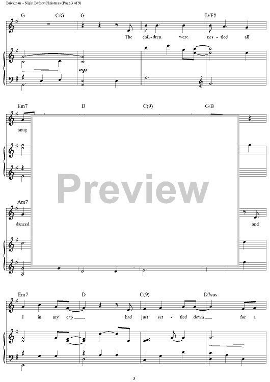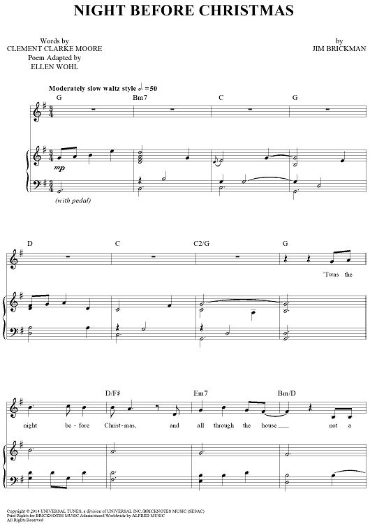 Digital Sheet Music for Night Before Christmas by Jim Brickman, Ellen Wohl, Clement Clarke Moore scored for Piano/Vocal/Chords; id:450048