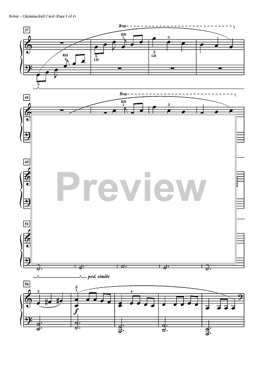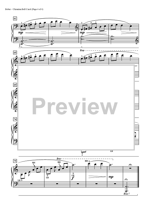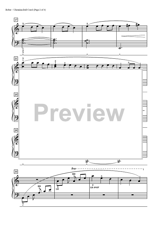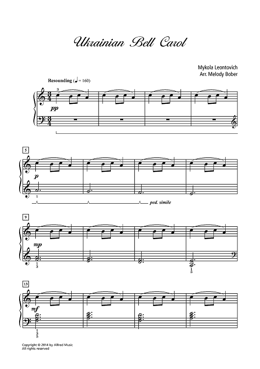 Digital Sheet Music for Ukrainian Bell Carol by Mikola Leontovic, Melody Bober scored for Piano; id:462804