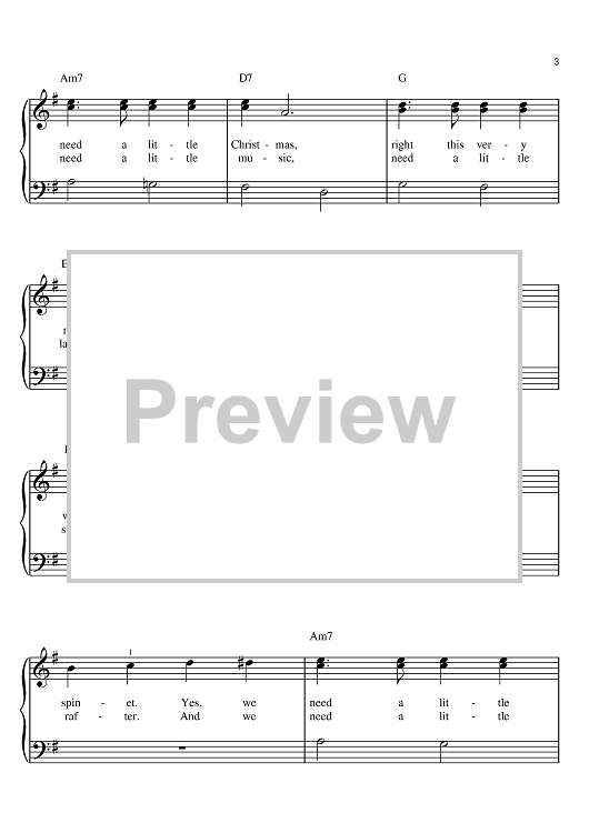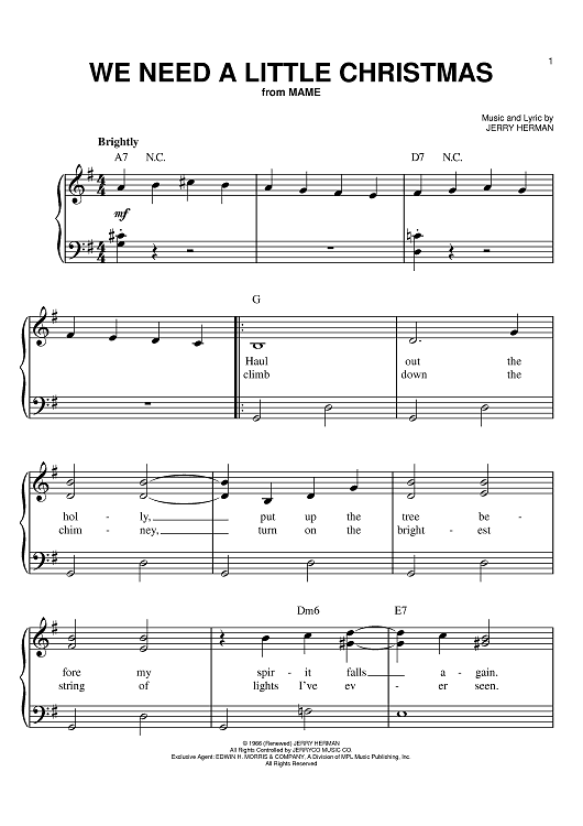 Digital Sheet Music for We Need A Little Christmas by Jerry Herman scored for Easy Piano; id:385783