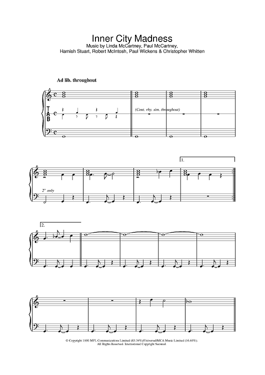Digital Sheet Music for Inner City Madness by Paul McCartney, Linda McCartney, Hamish Stuart, Robert McIntosh, Christopher Whitten, Paul Wickens scored for Piano/Vocal/Chords; id:389174