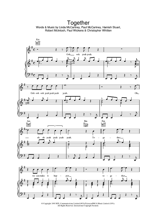 Digital Sheet Music for Together by Paul McCartney, Linda McCartney, Hamish Stuart, Robert McIntosh, Christopher Whitten, Paul Wickens scored for Piano/Vocal/Chords; id:389175
