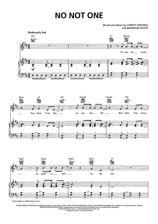 Digital Sheet Music for No Not One by Christy Nockels, Brandon Heath scored for Piano/Vocal/Chords; id:460433